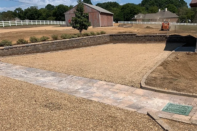 This system works great along retaining walls, soggy yard corners, or behind driveways like the sloped ones you find near the hills around Maury County Park.